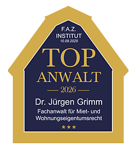Seit Januar 2006 ist Dr. Jürgen Grimm Fachanwalt für Mietrecht und Wohnungseigentumsrecht und wurde in den Jahren 2013 und 2016 in den FOCUS-Bestenlisten als einer der besten 120 Anwälte auf dem Gebiet des Miet- und Wohnungseigentumsrechts genannt.